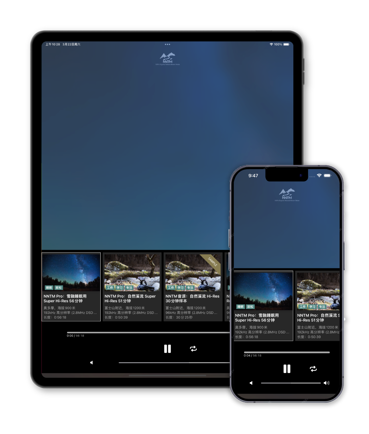 NNTM 出于对自然的尊重,以高品质、忠于自然环境的理念来开发音源。在精心挑选的山地环境中进行录音,一方面延续了布朗噪声的特性,另一方面又能在更宽的范围内覆盖日常噪音。